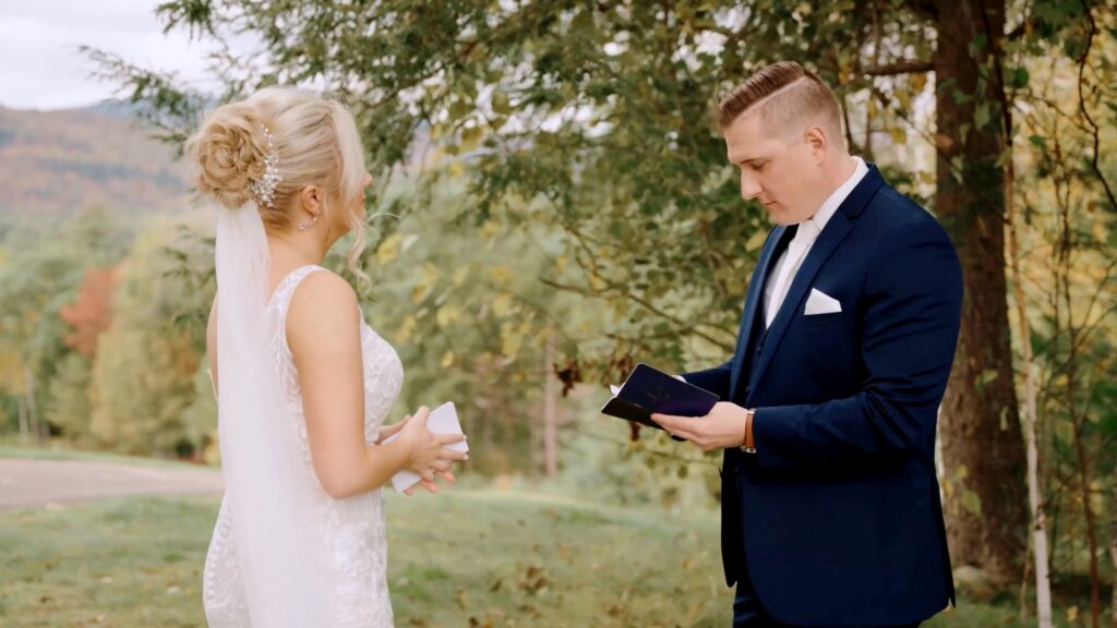 This was one of those moments that stays with you. On the overlook, with the White Mountains stretching endlessly behind them, Cameron turned to see Kelly for the first time. The air shifted —quiet, emotional, and full of meaning. They shared private vows right there, away from the crowd, speaking words only meant for each other. It was deeply personal; honest tears, soft laughter, and a stillness that made the entire moment feel sacred.